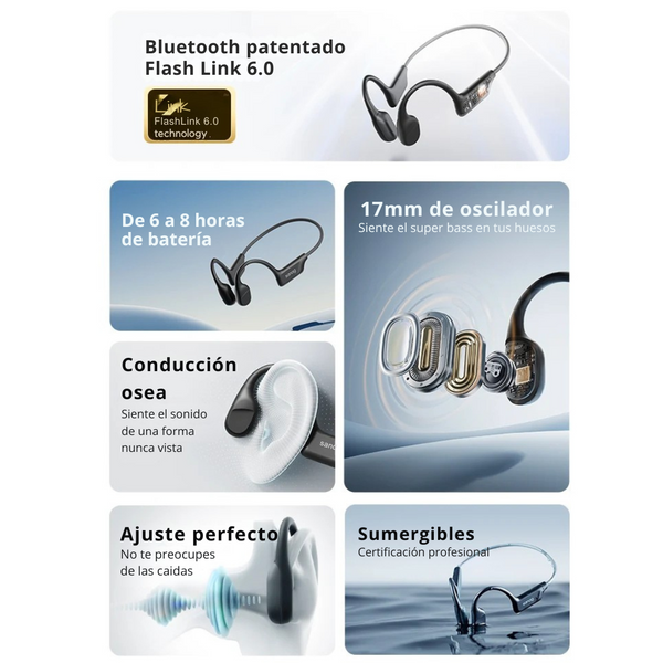 Los OpenRun ofrecen un ajuste seguro y cómodo gracias a su diseño open-ear. Sin presión en los oídos ni riesgo de que se caigan al correr, te permiten disfrutar de tu música sin interrupciones. Su ligereza y estabilidad son ideales para mujeres activas.