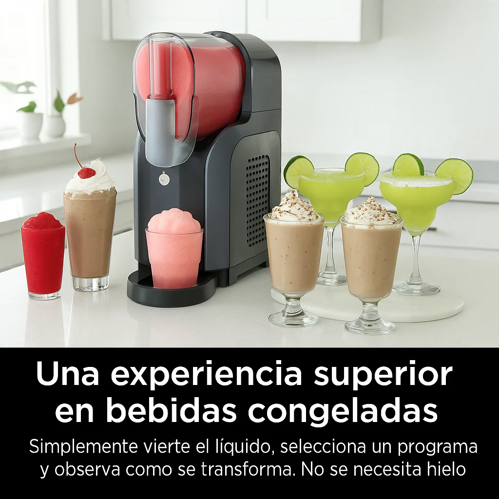 ¡Refrescarse en casa nunca fue tan fácil! Con la innovadora tecnología RapidChill, esta máquina transforma tus bebidas favoritas en granizados y batidos perfectos sin necesidad de hielo, directamente desde el líquido a la textura ideal.